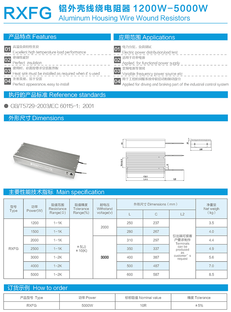 RXFG型铝外壳线绕电阻器